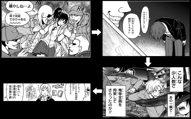 しかしながら、矢田ちゃんへセクハラをかました部下やカルマに頭を下げさせた部下がボコボコにされる様は痛快であり、E組生徒を拉致した回もフリとして効いているため、個人的には漫画のほうが面白かったと感じる。